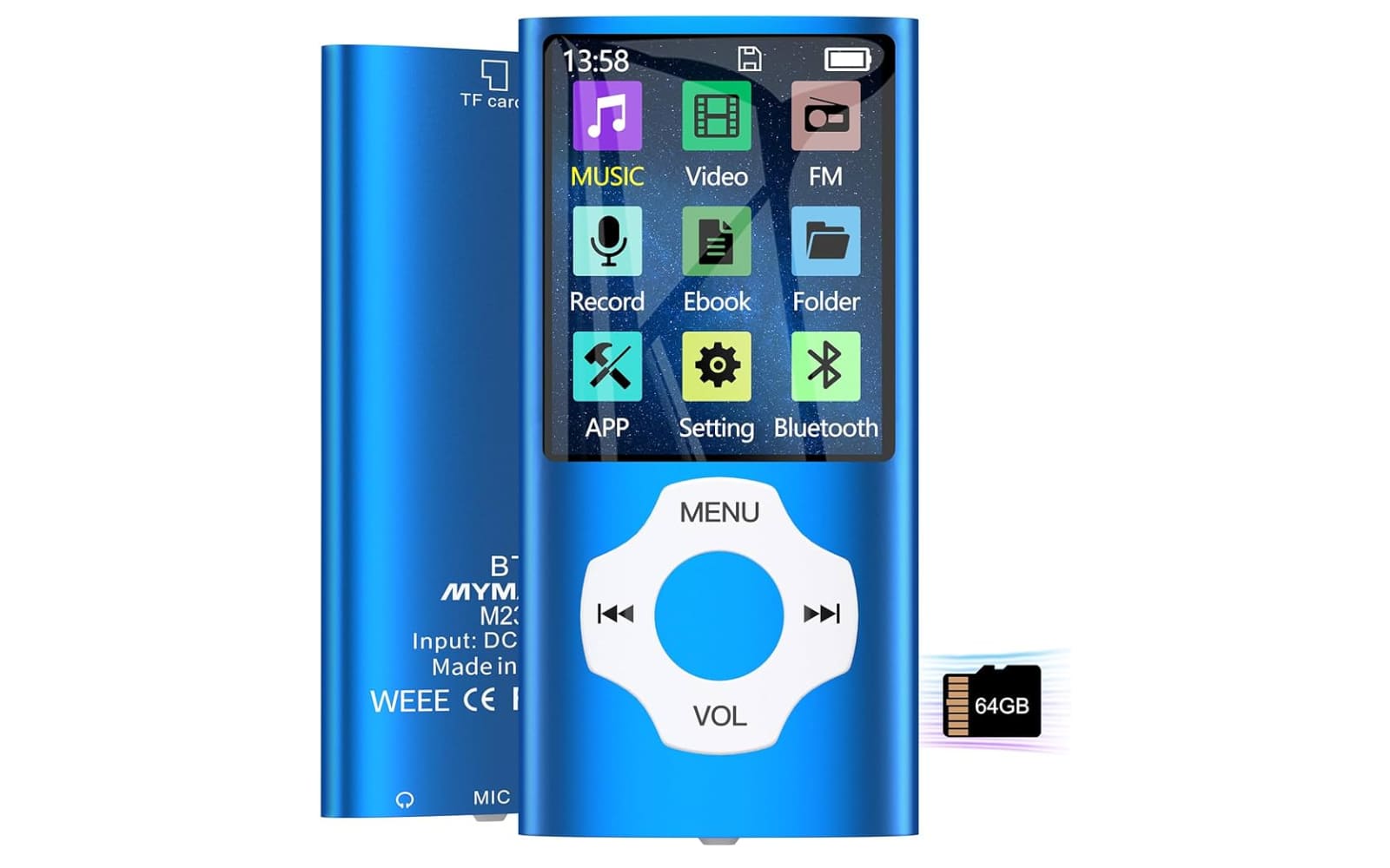 A compact, classic MP3 player with a 1.8″ LCD screen, FM radio, voice recording, and expandable memory — perfect for on-the-go audio.